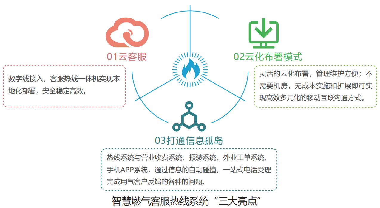 “智慧城市”加速建设的今天,智慧燃气成为新一轮的建设热点。mksport体育以服务为目标,以产业为依托,以技术为主线,推出“智慧燃气客服热线系统”,强化燃气企业管理,优化服务体系,已成为了企业与用户之间沟通的桥梁,极大地提高了为民“排忧解难”效率。