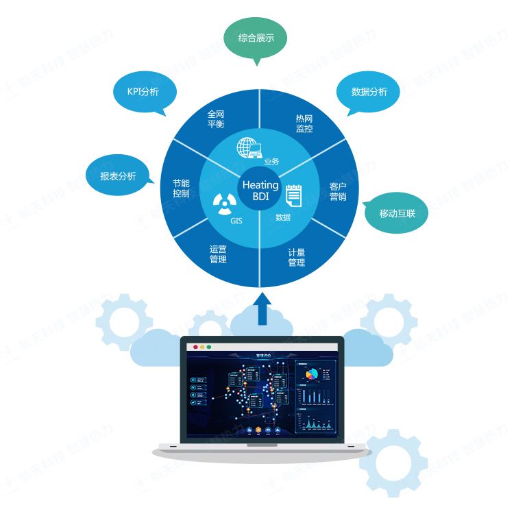 平台以"数据+业务"为理念,以供热数据中台中构建的数据为基础,从空间维度、业务视角展示供热各系统的运行数据,并在此基础上进行综合展示、分析和报表。用户根据需求进行个性化配置,满足日益变化的业务需求。管控决策分析KPI实现了统一平台化管理,使业务操作更加方便快捷,交互性更加突出。 可以从不同维度、不同空间对生产运行、管网管理、客户营销、运营管理、综合服务等进行综合管控决策分析展现。