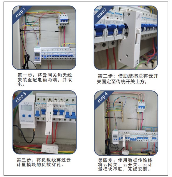 安装于控电箱内空开附近的导轨上,上行通过4G方式与平台进行通信,下行通过R-Bus完成对空开上的云开关、云计量及云测温的数据通信及控制管理。